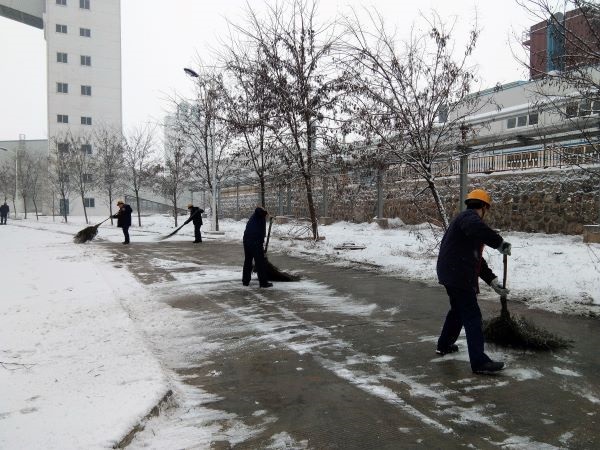 寒風(fēng)呼嘯的路口,職工們浴奮戰(zhàn),那一個(gè)個(gè)忙碌的背影顯得格外暖心,惡劣的天氣并沒有影響職工們的工作熱情,你鏟、我推、他掃、齊心合作,開辟出了一條條安全通道。