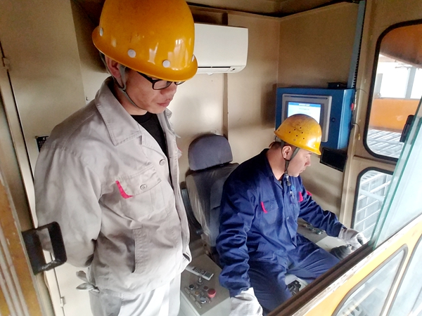 雖說(shuō)都是天車工作崗位,但和平時(shí)所操作的天車還是有區(qū)別的。一個(gè)是焙燒多功能天車,一個(gè)是堆垛天車,兩者在操作上還是有一定差異。所以臨時(shí)協(xié)調(diào)人員還是需要再次進(jìn)行實(shí)操培訓(xùn)。天車班班長(zhǎng)賀曉東帶領(lǐng)天車班成員在堆垛班副班長(zhǎng)范紅云的指導(dǎo)下,進(jìn)行堆垛天車實(shí)操練習(xí)。
