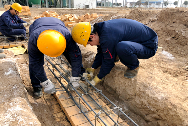 在這個乍暖還寒的時候,一切都在靜靜蘇醒的時刻,為了保證焙燒車間油品存放的安全,有一群人正在忙碌著。瞧,車間主任帶領(lǐng)著員工和勞務(wù)人員正在埋頭苦干,伴隨著“咣當(dāng)咣當(dāng)”的電夯聲,基坑在和灰土層在我們勤勞的雙手下慢慢成型。原來為了保證油庫墻體的安全,車間領(lǐng)導(dǎo)決定“自己動手,豐衣足食”,按照土建的施工方法進(jìn)行油庫的墻體施工,確保安全。