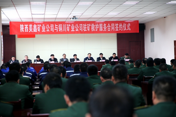 3月8日上午,陜西美鑫礦業(yè)公司與銅川礦業(yè)公司駐礦服務(wù)合同簽約儀式在銅川礦業(yè)救護(hù)大隊六樓會議室隆重舉行。陜煤集團(tuán)煤炭事業(yè)部副經(jīng)理、陜煤股份副總工程師歸會林、陜西美鑫產(chǎn)業(yè)投資公司總經(jīng)理封建利、銅川礦業(yè)公司總會計師萬軍鋒、陜西有色金屬控股集團(tuán)公司安環(huán)部關(guān)凱、陜西美鑫產(chǎn)業(yè)投資公司副總經(jīng)理、總工程師元勝利、陜西美鑫產(chǎn)業(yè)投資公司綜合辦主任池遠(yuǎn)宏、陜西美鑫產(chǎn)業(yè)投資公司安全環(huán)境管理部主任孟祥輯、陜西美鑫礦業(yè)公司總經(jīng)理郭百強,銅川礦業(yè)公司礦山救護(hù)大隊大隊長劉平治,以及陜西美鑫礦業(yè)有限公司和銅川礦業(yè)救護(hù)大隊干部職工代表90余人參加簽約儀式。 上午10時簽約儀式在銅川礦業(yè)公司救護(hù)大隊六樓會議室正式開始。首先,礦山救護(hù)大隊大隊長劉平治作了熱情洋溢的歡迎詞,對促成本次簽約合作和長期以來關(guān)心支持救護(hù)隊發(fā)展建設(shè)的上級組織與兄弟單位表示感謝,對參加簽約儀式的來賓表示歡迎。隨后,陜西美鑫產(chǎn)業(yè)投資公司安全環(huán)境管理部主任孟祥輯簡要介紹了簽約雙方情況和簽約背景。 接著,陜西美鑫礦業(yè)公司總經(jīng)理郭百強與銅川礦山救護(hù)大隊大隊長劉平治在雙方與會人員共同見證下簽署了《礦山救護(hù)服務(wù)合同書》。 銅川礦業(yè)公司總會計師萬軍鋒在講話中對救護(hù)工作提出具體要求。一是要提高認(rèn)識,牢記使命,切實發(fā)揮國家隊安全輻射帶動作用。二是要強化紀(jì)律,服從管理,快速融入礦區(qū)工作。三是要統(tǒng)籌安排,協(xié)調(diào)推進(jìn),扎實提升應(yīng)急處置能力。為做好駐礦救護(hù)服務(wù)工作提供更加堅實有力的專業(yè)技術(shù)保障。陜西美鑫產(chǎn)業(yè)投資有限公司副總經(jīng)理、總工程師元勝利在講話中對雙方成功簽約表示祝賀,對做好今后駐礦救護(hù)服務(wù)工作提出了三點要求。一是要求美鑫礦業(yè)公司增強團(tuán)隊意識,全力做好駐礦救護(hù)中隊的生活保障工作。二是要求救護(hù)大隊切實發(fā)揮好專業(yè)技術(shù)優(yōu)勢,推動冶坪煤礦項目安全平穩(wěn)建設(shè)。三是希望雙方攜手并進(jìn),促進(jìn)更大范圍、更深領(lǐng)域的交流合作。奮力譜寫老牌國企與新生國企共謀發(fā)展的新篇章,努力實現(xiàn)增加企業(yè)效益與增進(jìn)職工福祉的“雙豐收”。 簽約儀式結(jié)束后,陜西美鑫礦業(yè)公司有關(guān)人員在公司礦山救護(hù)大大隊長劉平治等陪同下實地參觀了救護(hù)大隊的救援基地以及救援設(shè)備等,并就做好今后的駐礦服務(wù)工作進(jìn)行了友好交流。