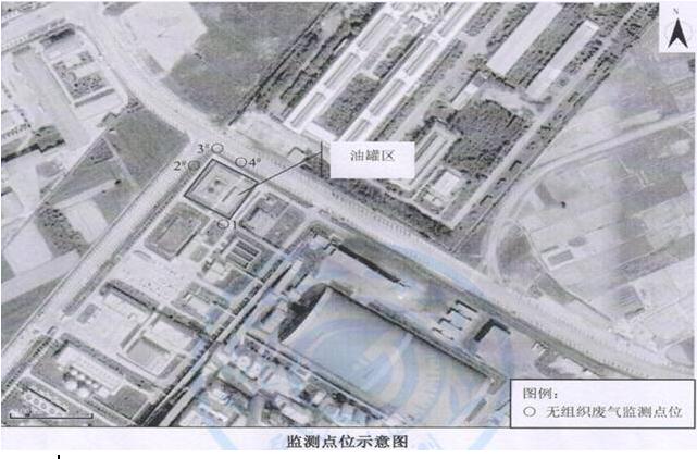 2)監(jiān)測(cè)點(diǎn)位:油罐四周上風(fēng)向設(shè)2個(gè)監(jiān)測(cè)點(diǎn)、下風(fēng)向設(shè)2個(gè)監(jiān)測(cè)點(diǎn)。