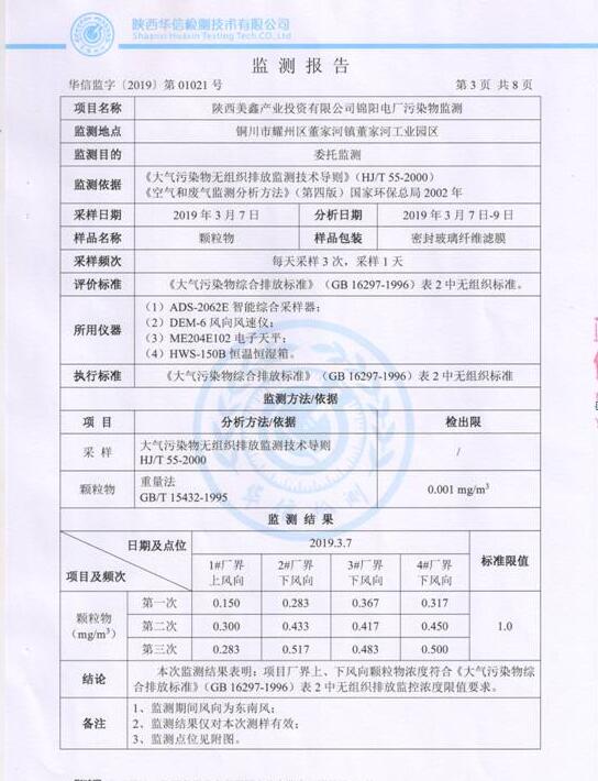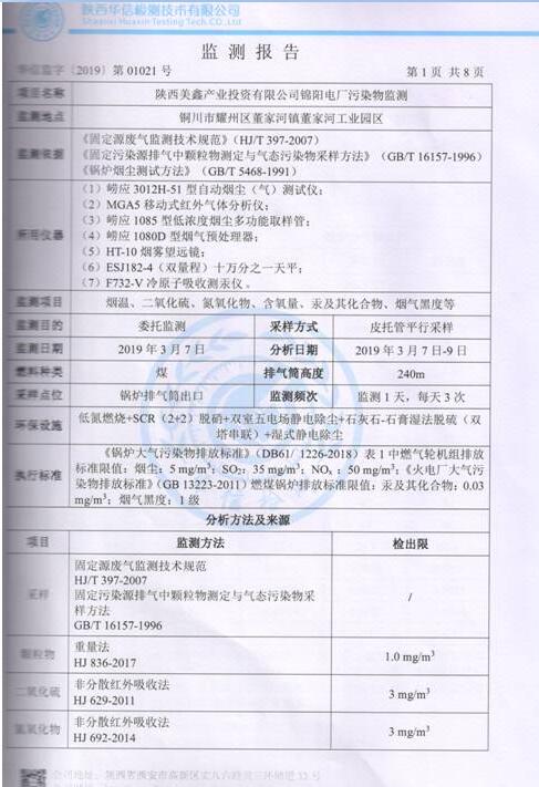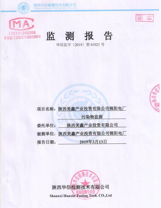陜西美鑫產(chǎn)業(yè)投資有限公司錦陽(yáng)電廠2×350MW機(jī)組20191季度自行監(jiān)測(cè)如下: