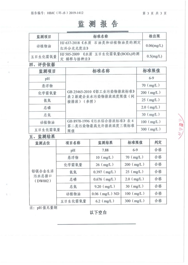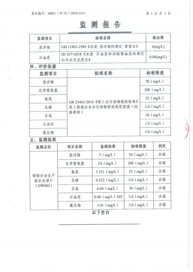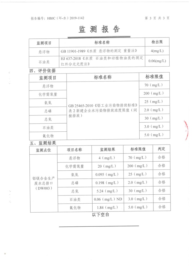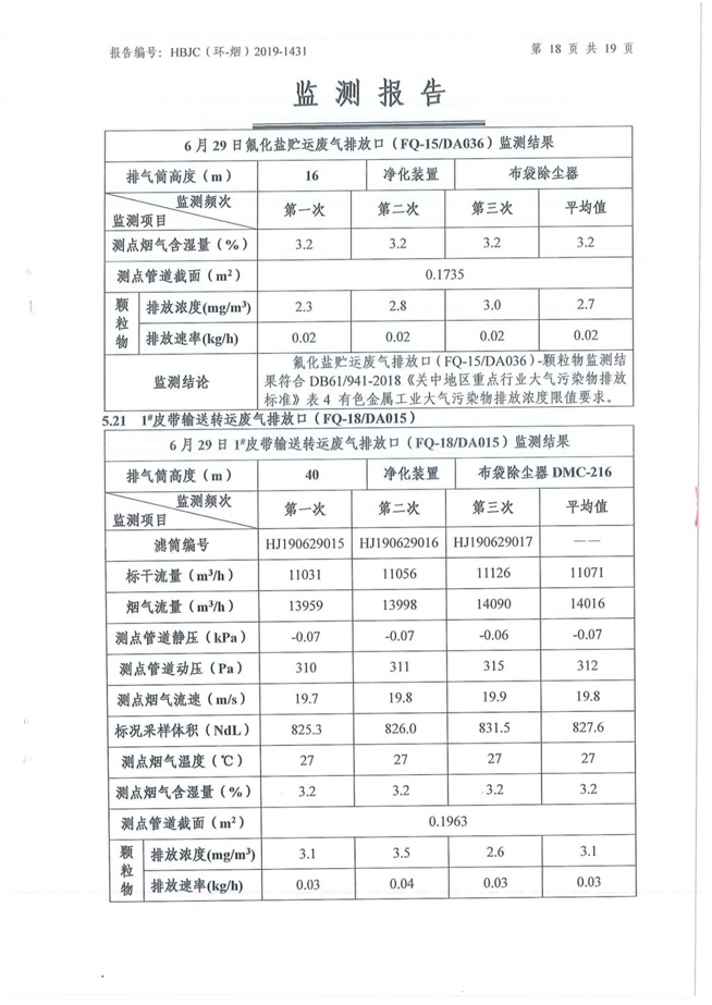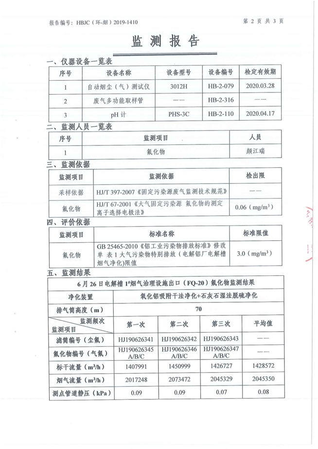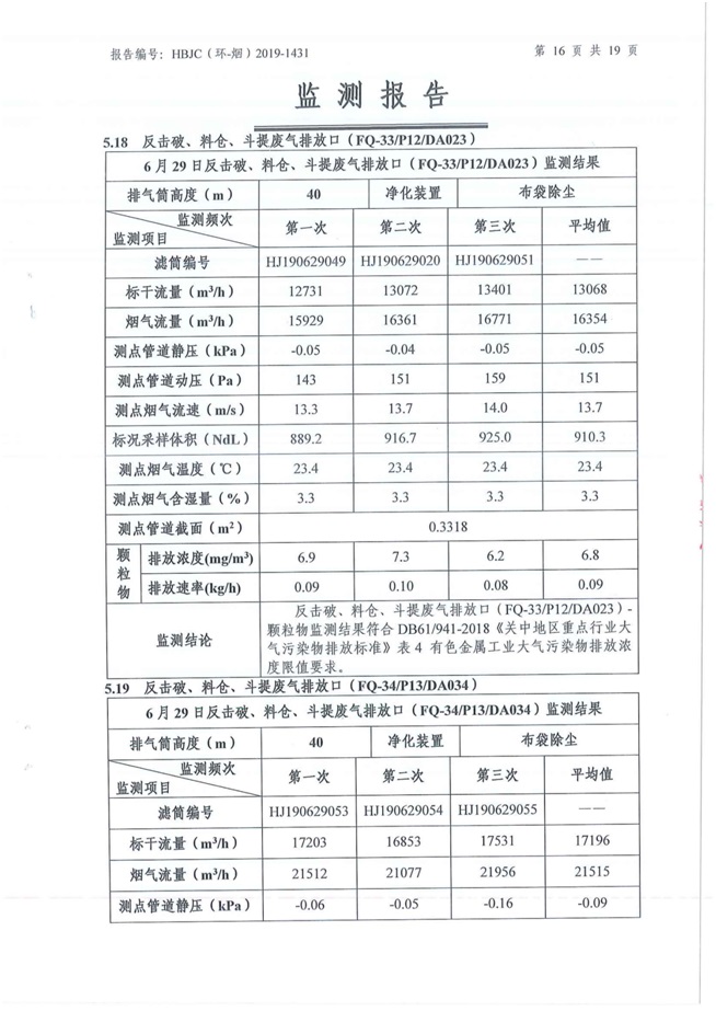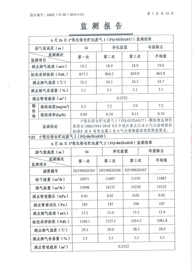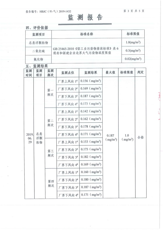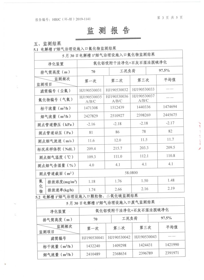 一、基礎(chǔ)信息: 陜西美鑫產(chǎn)業(yè)投資有限公司 統(tǒng)一社會(huì)信用代碼:91610200567136996Y 法定代表人:高曉兵 生產(chǎn)地址:陜西省銅川市董家河工業(yè)園區(qū) 聯(lián)系方式:09196982605 生產(chǎn)經(jīng)營和管理服務(wù)的主要內(nèi)容、產(chǎn)品及規(guī)模: 美鑫公司在陜西有色、陜西煤化兩大集團(tuán)的正確領(lǐng)導(dǎo)下,在銅川市委、市政府的關(guān)心支持下,充分利用銅川資源型城市轉(zhuǎn)型政策,依托園區(qū)區(qū)位優(yōu)勢(shì),擬投資150億元,建設(shè)年產(chǎn)30萬噸預(yù)焙陽極、120萬噸煤礦、30萬噸鋁鎂合金及配套動(dòng)力站、20萬噸鋁深加工、年吞吐量500—800萬噸物流園等循環(huán)經(jīng)濟(jì)項(xiàng)目。該集群項(xiàng)目已被列入《陜西省國民經(jīng)濟(jì)和社會(huì)發(fā)展第十二個(gè)五年規(guī)劃綱要》,為陜西省“58123”項(xiàng)目之一。美鑫公司以循環(huán)經(jīng)濟(jì)為路徑,堅(jiān)持經(jīng)濟(jì)增長與環(huán)境保護(hù)協(xié)調(diào)發(fā)展,聚合資源與資本,走綠色發(fā)展、清潔發(fā)展、低碳發(fā)展的循環(huán)經(jīng)濟(jì)轉(zhuǎn)型升級(jí)之路。 陜西美鑫鋁鎂合金分公司采用的500kA預(yù)焙陽極電解槽,自動(dòng)化程度高,電解槽打殼、加料全過程均由微機(jī)自動(dòng)控制,從而使槽罩開啟次數(shù)顯著降低,電解槽集氣效率能夠達(dá)到99%,大大地減少了煙氣無組織排放。項(xiàng)目配置了2套電解煙氣凈化系統(tǒng),經(jīng)捕集的煙氣通過排煙支管進(jìn)入排煙總管,采用電解鋁生產(chǎn)原料—氧化鋁吸附阻濾煙氣中的氟化氫氣體及含氟煙塵,吸附后的載負(fù)氧化鋁進(jìn)入袋式除塵器,經(jīng)氣固分離后進(jìn)入石灰石—石膏脫硫系統(tǒng)脫硫。 陜西美鑫產(chǎn)業(yè)投資有限公司鋁鎂合金分公司2019年2季度自行監(jiān)測(cè)如下: 二、監(jiān)測(cè)方案: 1 大氣污染源監(jiān)測(cè)