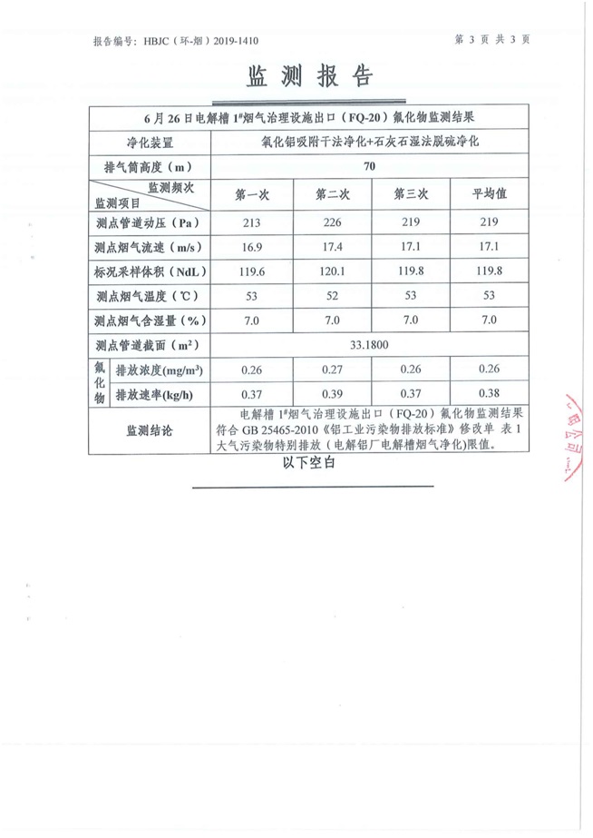 1.1電解槽煙氣治理設(shè)施總排口CEMS在線設(shè)備比對(duì)監(jiān)測(cè)