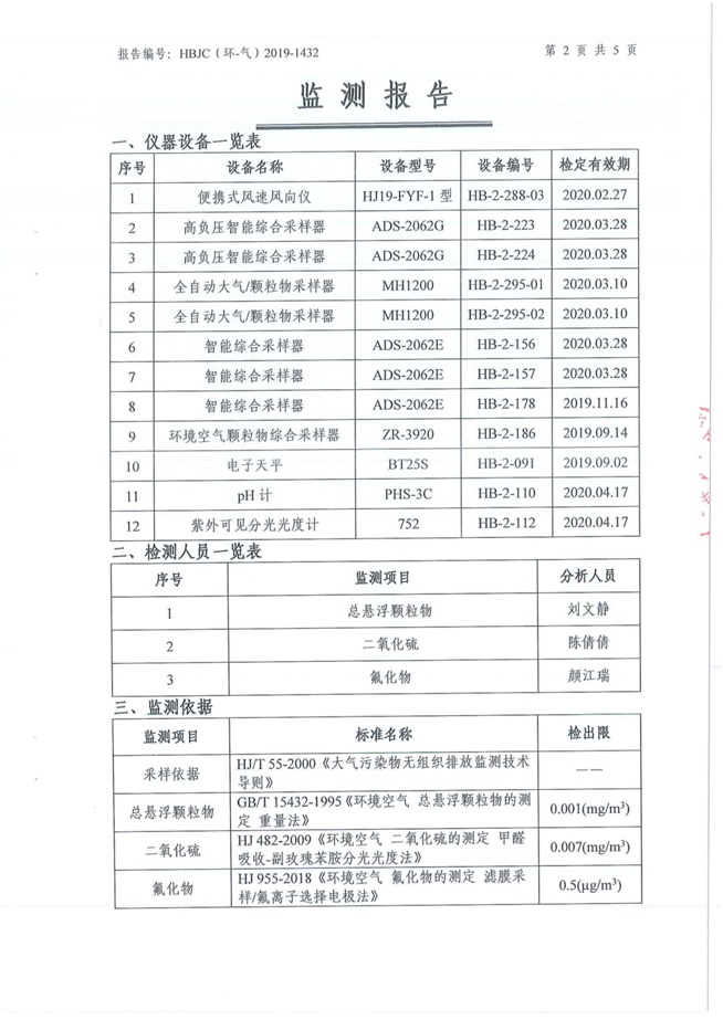 (1)監(jiān)測(cè)指標(biāo):顆粒物; (2)監(jiān)測(cè)點(diǎn)位:共計(jì)30個(gè)一般排放口(現(xiàn)啟用22個(gè)); (3)監(jiān)測(cè)頻次:每半年監(jiān)測(cè)一次,連續(xù)監(jiān)測(cè)1天,等時(shí)間間隔采集3個(gè)樣品。 1.4廠界顆粒物、二氧化硫、氟化物監(jiān)測(cè)