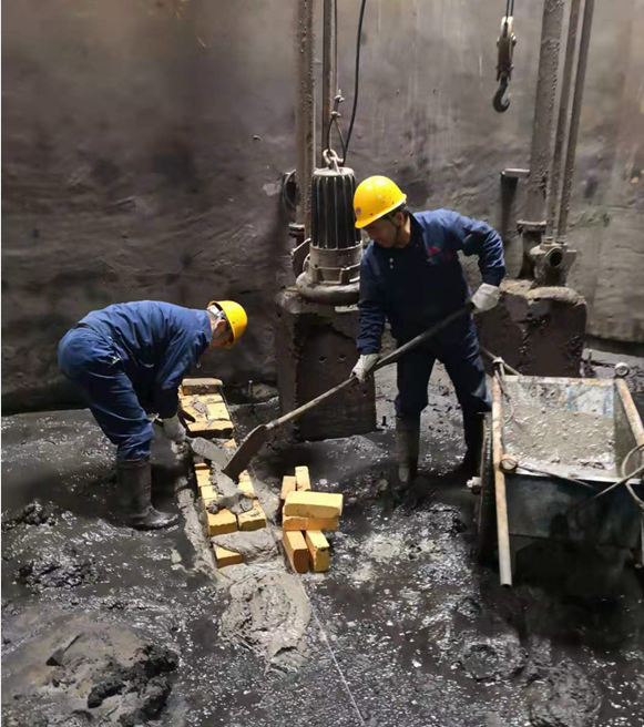 陽極分公司現(xiàn)有的污水處理系統(tǒng)缺少初期污泥沉淀池,雜質(zhì)形成的大量污泥隨潛污泵進(jìn)入污水處理系統(tǒng),不僅影響設(shè)備的水處理能力,或造成設(shè)備損壞,甚至出水水質(zhì)不能達(dá)到環(huán)保標(biāo)準(zhǔn)。為此,陽極分公司動(dòng)力車間召開了調(diào)節(jié)池技術(shù)改造專題研究會(huì)議,制定方案,實(shí)施改造。 10月初,污水調(diào)節(jié)池改造工程在空壓污水班班長任延峰的帶領(lǐng)下,王文慶、岳剛、何祥等同志實(shí)施改造。他們利用僅有的手推車,不畏艱難,將磚和水泥吊運(yùn)到8米多深的水池。池下光線差,空氣封閉,潮濕,排水期間又逢連陰雨,又為改造工程增添了難度和強(qiáng)度,他們?nèi)淌苡倌嗌l(fā)的臭味和濕冷潮氣的侵襲,一磚一磚嚴(yán)密壘砌,拉緊線,對(duì)平縫,保證墻體平直通順。近一個(gè)月的時(shí)間,硬是在池底筑起了一道高1米,長30米的淤泥圍擋墻。調(diào)節(jié)池具備了沉淀功能,達(dá)到環(huán)保綠色生產(chǎn)要求及節(jié)能循環(huán)再利用的效果,被職工們稱為“效率”墻。 污水“效率”墻的砌筑,為陽極分公司污水處理環(huán)保達(dá)標(biāo)、系統(tǒng)安全高效運(yùn)行提供了技術(shù)保障。 |