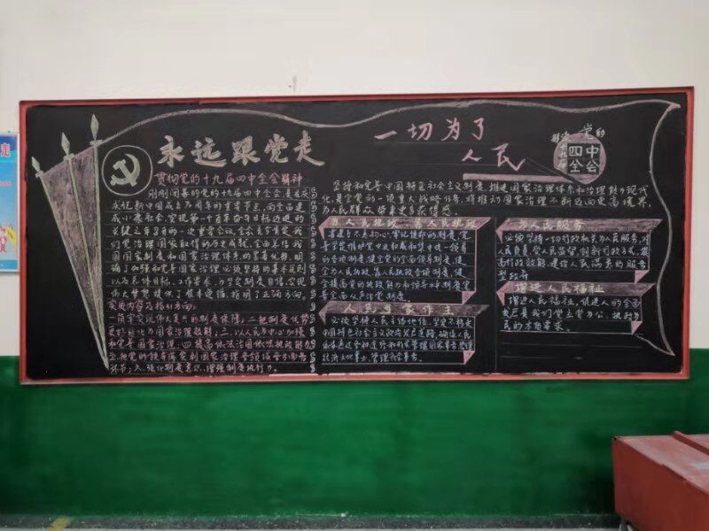 黨建專欄,“永遠跟黨走”幾個鮮明的大字,配上詳實的內(nèi)容,將黨的思想路線、方針政策、十九屆四中全會精神及時在一線宣講。