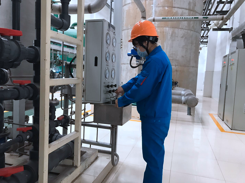 在疫情面前,她是精明能干的檢查員,加大設(shè)備巡查和安全隱患排查力度,特別是對除鹽制水,消防水,生活水及工業(yè)廢水等所有的制水設(shè)備開展“拉網(wǎng)”式檢查;及時(shí)發(fā)現(xiàn)設(shè)備缺陷和隱患并協(xié)調(diào)處理,積極組織消除威脅安全生產(chǎn)的缺陷和隱患,確保機(jī)組健康穩(wěn)定運(yùn)行;同時(shí),加強(qiáng)水質(zhì)重要參數(shù)的監(jiān)視和調(diào)整,“晨星理數(shù)據(jù),戴月分析歸”,使各項(xiàng)數(shù)據(jù)更及時(shí),更具體,精益求精,嚴(yán)格落實(shí)水箱液位,確保用水狀態(tài)可控、在控,全面開展疫情防控期間發(fā)電工作。