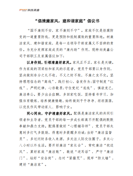 “倡清廉家風(fēng),建和諧家庭”倡議書