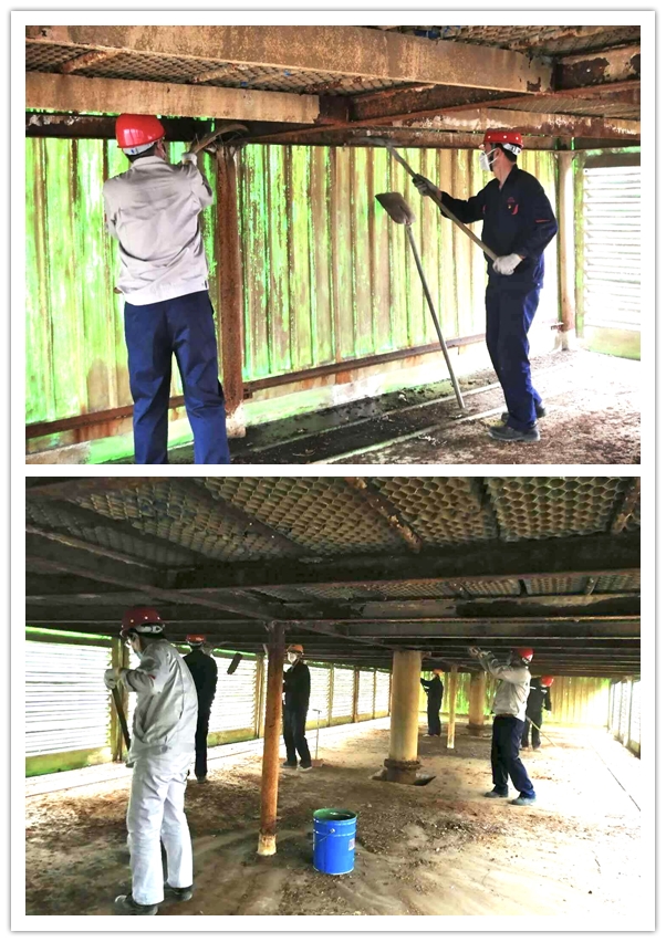 為了保證循環(huán)水設備安全平穩(wěn)運行,確保煅燒車間煅燒爐順利啟動。2020年9月中下旬,陽極分公司動力車間黨支部組織全體黨員開展清理冷卻塔主題黨日活動,對煅燒車間600噸冷卻塔各部位進行仔細排查檢修,并對內(nèi)部散熱管,鋼構(gòu)架進行全面清理。在車間黨支部書記的帶領下,10名黨員戴上防塵口罩,拿著掃把、鐵锨、鐵桶等工具開始清理。勞動中,大家兩人一組,邊鏟邊掃,配合默契,褐色的鐵銹塊紛紛落下,斑斑銹跡慢慢褪去。經(jīng)過大家的不懈努力,冷卻塔內(nèi)結(jié)垢物質(zhì)全部清理干凈,內(nèi)部臺面恢復潔凈。清理結(jié)束后,大家的口罩已變成了黃褐色,浮灰也布滿了每個人的臉頰,看著煥然一新的設備,大家的臉上露出了開心的笑容。 本次主題黨日活動把組織生活與義務清理勞動有機結(jié)合,營造出了良好的工作環(huán)境,用實際行動詮釋和踐行了黨員的先鋒模范作用,為促進陽極分公司生產(chǎn)工作貢獻了自己的一份力量。 |