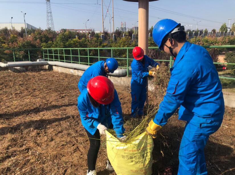 經(jīng)過近一個(gè)小時(shí)的辛勤勞動(dòng),工業(yè)消防水池頂部雜草被清除干凈,廠區(qū)面貌煥然一新。
