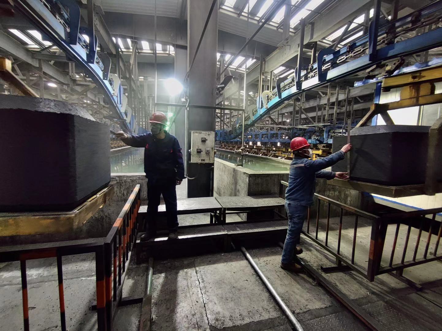 陽(yáng)極分公司成型車間由兩條生產(chǎn)線組成,設(shè)計(jì)雙線滿負(fù)荷年產(chǎn)能30萬(wàn)噸,前期在滿足計(jì)劃產(chǎn)量的情況下,一直處于單線交替運(yùn)行狀態(tài),但隨著焙燒車間第四火焰系統(tǒng)及煅燒車間罐式爐相繼點(diǎn)火啟動(dòng),一條線的生陽(yáng)極產(chǎn)量已無(wú)法滿足供應(yīng)需求,作為陽(yáng)極分公司生產(chǎn)過(guò)程中的核心環(huán)節(jié),成型車間雙線啟動(dòng)勢(shì)在必行。11月10日上午10時(shí)30分,經(jīng)過(guò)前期精心準(zhǔn)備,成型車間在確保1#生產(chǎn)線平穩(wěn)運(yùn)行的情況下正式啟動(dòng)2#配料線,全面實(shí)現(xiàn)雙線同時(shí)生產(chǎn)運(yùn)行。 啟動(dòng)前期,成型車間通過(guò)合理優(yōu)化人員結(jié)構(gòu),完善細(xì)化設(shè)備檢修,多次組織召開安全生產(chǎn)工藝培訓(xùn),同時(shí)克服了人員短缺、新調(diào)入員工年齡偏大、操作技能生疏等諸多困難;分公司領(lǐng)導(dǎo)、相關(guān)部門及車間生產(chǎn)管理、技術(shù)人員多次進(jìn)行現(xiàn)場(chǎng)研討,對(duì)中碎系統(tǒng)供料、熱媒溫度、配料配方等問(wèn)題協(xié)商討論,并逐項(xiàng)進(jìn)行生產(chǎn)線實(shí)操檢驗(yàn)消缺,確保雙線順利啟動(dòng)。啟動(dòng)過(guò)程中,作業(yè)人員嚴(yán)格按照安全操作規(guī)程、啟動(dòng)方案要求,從配料混捏到壓模成型一氣呵成,11時(shí)40分,隨著2#線第一組生陽(yáng)極塊順利下線,標(biāo)志著成型雙線啟動(dòng)全面完成。雙線啟動(dòng)生產(chǎn)對(duì)現(xiàn)場(chǎng)安全生產(chǎn)管理、設(shè)備高效滿負(fù)荷運(yùn)轉(zhuǎn)提出更高的要求,后期車間將組織車間骨干、技術(shù)人員進(jìn)行不間斷巡視檢查,實(shí)時(shí)監(jiān)測(cè)產(chǎn)品質(zhì)量,根據(jù)質(zhì)量信息反饋,對(duì)標(biāo)配料配方、工藝溫度等參數(shù)及時(shí)做出調(diào)整,保證兩條生產(chǎn)線安全、持續(xù)、平穩(wěn)運(yùn)行的同時(shí)最大程度提高生陽(yáng)極合格率。 陽(yáng)極分公司成型車間雙線同時(shí)啟動(dòng)生產(chǎn),生陽(yáng)極單日產(chǎn)量從500余塊增加至1000余塊,完全滿足焙燒車間四個(gè)火焰系統(tǒng)裝爐需求,對(duì)陽(yáng)極分公司生產(chǎn)工藝鏈閉合起到了鞏固作用,為分公司全面達(dá)產(chǎn)達(dá)標(biāo)奠定了堅(jiān)實(shí)基礎(chǔ)。 |
