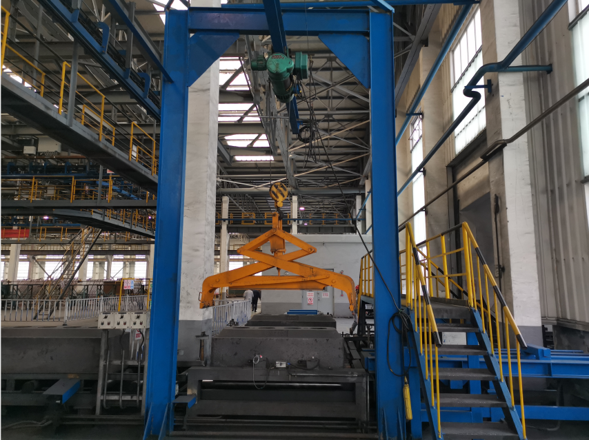 陽極分公司組裝車間在生產(chǎn)過程中,經(jīng)常會遇到熟陽極炭塊上線進入澆鑄區(qū)域時,因鋼爪和炭塊填碗偏差而出現(xiàn)組對失敗的現(xiàn)象,一旦出現(xiàn)組隊失敗,就只能利用叉車倒運外排后通過運輸車輛重新返回焙燒車間上線。然而受炭塊組對作業(yè)區(qū)空間限制,車輛倒運操作難度大、作業(yè)安全風險較高,同時,倒運外排還造成車輛運輸成本增加,生產(chǎn)效率降低等問題。 為了徹底解決這一生產(chǎn)難題,在分公司領(lǐng)導(dǎo)積極協(xié)調(diào)下,相關(guān)部門同組裝車間生產(chǎn)管理技術(shù)人員積極借鑒同行業(yè)先進生產(chǎn)經(jīng)驗,多次在現(xiàn)場討論研究,實踐分析,最終制定出行之有效的技改方案:通過在炭塊外排區(qū)加裝立式龍門架,安裝炭塊起吊設(shè)備,并調(diào)整PLC自動控制系統(tǒng),當炭塊組對失敗后,便可利用起吊設(shè)備就地進行重新組對上線,既省去了叉車倒運環(huán)節(jié),避免了外排運輸安全問題,又簡化了工藝流程,降低了車輛倒運外排費用,徹底解決了長期影響生產(chǎn)工藝的“老大難”。 炭塊外排上線工序改造完成后,通過一個多月的運行檢驗,澆鑄區(qū)流水線運行狀態(tài)良好,既節(jié)約了生產(chǎn)運輸成本,降低了作業(yè)風險和人工勞動強度的同時,又使生產(chǎn)效率得到顯著提高,為陽極分公司組裝車間高效率完成產(chǎn)量任務(wù)奠定了堅實基礎(chǔ)。 |