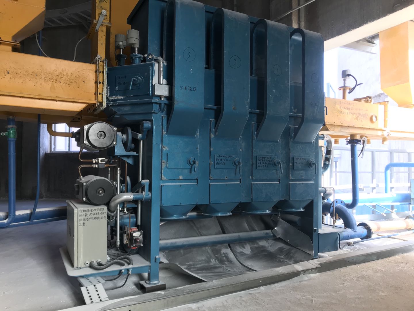 鋁鎂合金分公司氧化鋁輸送系統(tǒng)除砂裝置是適用于氧化鋁輸送系統(tǒng)分離雜質(zhì)的一套機(jī)械化自動(dòng)裝置。長期以來,除砂裝置在除砂過程中總是含有大量雜質(zhì)摻雜在氧化鋁粉中,雜質(zhì)進(jìn)入供料溜槽,因多次沉積在溜槽中造成供料溜槽堵塞,導(dǎo)致后續(xù)凈化除塵器投料不均,嚴(yán)重影響凈化除塵器的反應(yīng)效率及排放濃度,不得不安排每班專人負(fù)責(zé)清理和二次篩分,工藝效能降低,勞動(dòng)強(qiáng)度增加。