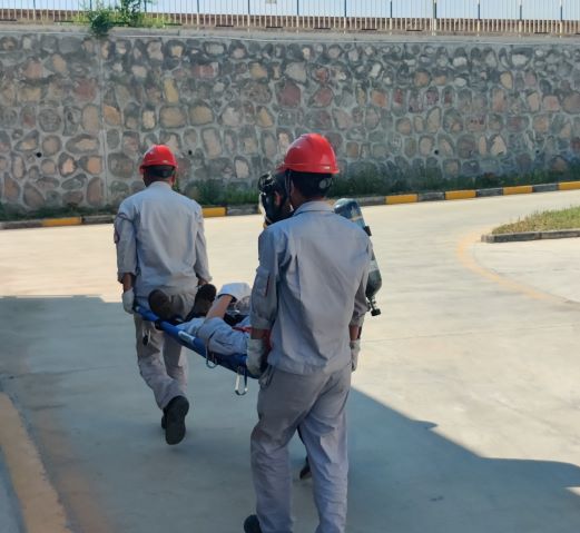 隨著總指揮一聲令下,下午15:00演練準時開始,檢維人員在對4#Z0401綜合管網(wǎng)井巡檢時,因在沒有事先檢測井內氧含量的情況下,私自進入綜合管網(wǎng)井進行違章作業(yè),導致窒息昏厥,同班人員發(fā)現(xiàn)后立即報告車間并撥打120救援電話,車間接到報告后立即啟動有限空間作業(yè)專項預案開展救援并上報領導。各應急小組相繼到達現(xiàn)場,分工展開救援工作。