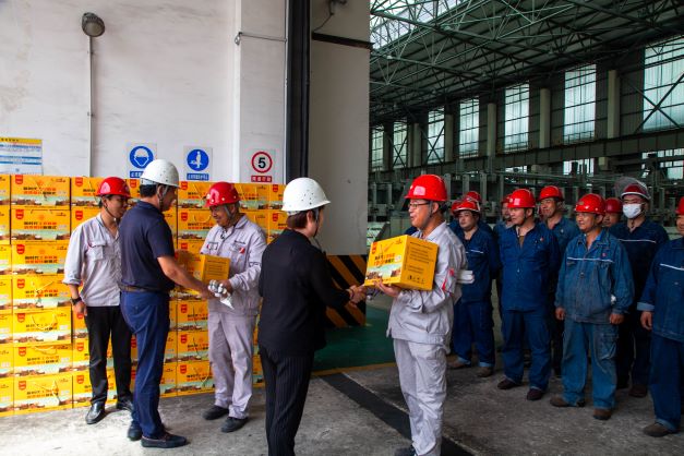 會(huì)前,譚小榮、張繼祥一行深入鋁鎂合金分公司電解、鑄造車間走訪慰問(wèn),為奮戰(zhàn)在一線的員工們送去了清涼慰問(wèn)品,獻(xiàn)上了一份誠(chéng)摯的關(guān)懷。同時(shí),在電解車間觀摩了公司開(kāi)展鋁電解換極工技能競(jìng)賽,對(duì)參賽選手予以慰問(wèn)。
