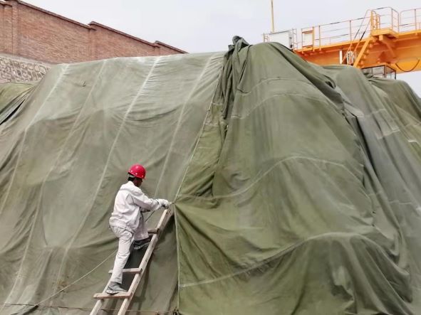 為防止露天環(huán)境下光照及近期極端天氣對(duì)氧化鋁料包造成的損害,保證電解用料的質(zhì)量,車間采取防護(hù)措施,在計(jì)劃堆放氧化鋁區(qū)域的水泥地面鋪上一層整齊厚厚的塑料紙隔潮,在料垛頂層為氧化鋁蓋上一層塑料紙,并用繩索相連蓋到堆放好的料垛上面,極大地避免因天氣原因而導(dǎo)致物料結(jié)塊的隱患,同時(shí)有效的防止因物料飛揚(yáng),造成廠區(qū)環(huán)境污染。