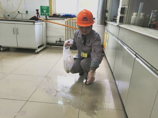 演練開始前,檢驗三室專工楊新興就應急演練的相關(guān)情況作了簡單的介紹,強調(diào)了演練注意事項。本著實戰(zhàn)原則,大家做好分工、準備就緒后,演練正式開始。化驗班分析人員周文在配制化學試劑時不小心將濃鹽酸打翻在地,身上、手部被灼傷。險情一出現(xiàn),班長段云第一時間撥打急救電話,將受傷人員帶離現(xiàn)場,開展緊急救治,并報告專工。專工隨即啟動應急預案,封鎖事故現(xiàn)場,撤離無關(guān)人員,對受污染的工作服和灑落地面的濃鹽酸進行處置,以避免造成二次傷害和環(huán)境污染。隨著120醫(yī)護人員將受傷人員送至醫(yī)院,演練順利完成。