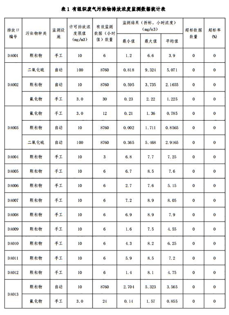 按照排污許可污染源自行監(jiān)測方案的要求,鋁鎂分公司2021年對各污染源排氣筒進行監(jiān)測,監(jiān)測結果統(tǒng)計如下: