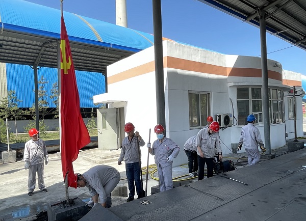 高溫“烤”驗(yàn)入黨初心,酷暑“汗”衛(wèi)精確計(jì)量。時值盛夏,質(zhì)檢計(jì)量中心黨支部立足生產(chǎn)實(shí)際,組織開展“清理磅秤”主題黨日活動,中心黨員參加了此次活動。 此次活動主要集中于錦陽電廠,活動中,大家分工明確,不怕臟累,用千斤頂將磅秤頂起,取出傳感器,分區(qū)域清理底部堆積而成的煤泥,對于沉積厚實(shí)無法破除的煤泥,俯下身去用高壓水槍進(jìn)行沖洗后再用鐵锨將其鏟除后,再次進(jìn)行沖洗,如此反復(fù),短短1小時內(nèi),磅秤便煥然一新。清理結(jié)束后,技術(shù)人員將磅秤傳感器歸位,落下磅秤并進(jìn)行角差校驗(yàn),確保重新投入運(yùn)行后計(jì)量精確。 通過本次活動,切實(shí)提高了磅秤計(jì)量的精準(zhǔn)度,充分激發(fā)了廣大黨員職工的責(zé)任意識和服務(wù)意識,使黨員職工在勞動中進(jìn)一步錘煉了黨性。在今后的工作中,中心黨支部會持續(xù)開展此類活動,讓黨旗在生產(chǎn)一線持續(xù)飄揚(yáng)。 |