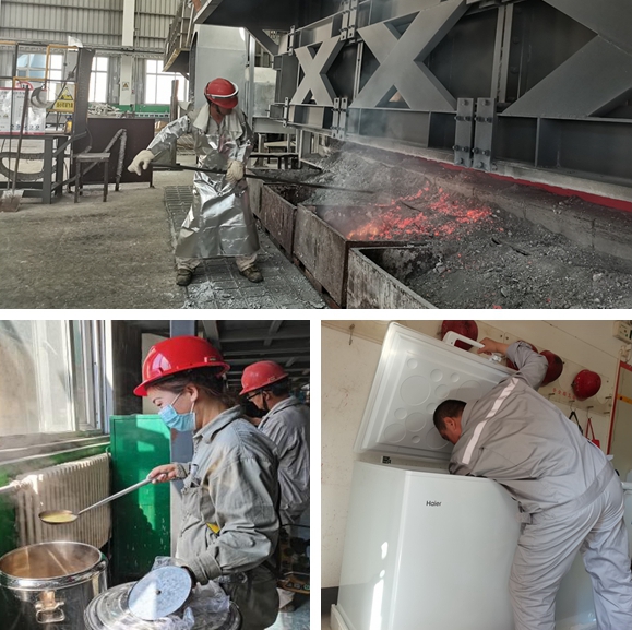 進(jìn)入7月份以來(lái),電解、鑄造等車(chē)間廠房溫度逐漸攀升,現(xiàn)場(chǎng)變得愈發(fā)酷熱。由于工作性質(zhì)特殊,職工們除佩戴安全帽外,防護(hù)面罩、隔熱套袖、隔熱圍裙和勞保鞋也是必不可少,渾身上下密不透風(fēng),他們身上的衣服濕了又干,干了又濕,泛起點(diǎn)點(diǎn)白斑。面對(duì)高溫“烤”驗(yàn),一如既往地堅(jiān)守在各自的崗位上。面對(duì)實(shí)際困難,鋁鎂合金分公司主動(dòng)作為,積極為車(chē)間現(xiàn)場(chǎng)增加了降溫風(fēng)扇,配備了冰柜,安排作業(yè)人員定時(shí)換班,并為生產(chǎn)一線職工送去西瓜和綠豆湯,發(fā)放藿香正氣水、風(fēng)油精、清涼油等防暑降溫藥品,確保職工作業(yè)安全,平安渡夏。