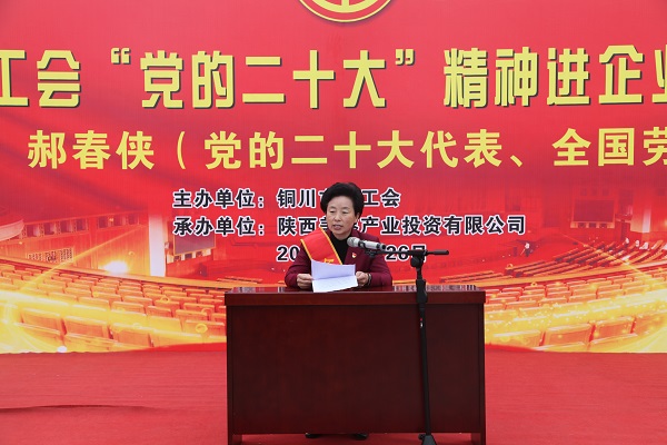 10月26日,公司邀請黨的二十大代表、全國勞模、銅川市耀州區(qū)石柱鎮(zhèn)西古莊村黨支部書記、村委會主任郝春俠進(jìn)企業(yè)宣講黨的二十大精神。 銅川市總工會相關(guān)負(fù)責(zé)人及公司領(lǐng)導(dǎo)出席會議,銅川市總工會機(jī)關(guān)、銘帝鋁業(yè)有限公司、陜西達(dá)美輪轂有限公司及公司黨員干部職工代表近600人參加此次會議。會議由公司黨委副書記李書平主持。 公司黨委書記、董事長高曉兵致辭,對銅川市總工會黨組書記、常務(wù)副主席何建平和郝春俠代表的到來表示熱烈的歡迎和衷心的感謝。他表示,黨的十八大以來,陜西美鑫公司始終堅(jiān)持以高質(zhì)量發(fā)展為主題,充分發(fā)揮國有企業(yè)在構(gòu)建“大循環(huán)、雙循環(huán)”發(fā)展新格局中應(yīng)有作用,積極踐行社會責(zé)任和企業(yè)擔(dān)當(dāng),為地方經(jīng)濟(jì)作出了積極貢獻(xiàn)。公司將倍加珍惜此次報(bào)告會帶來的高層次、高水平的實(shí)踐輔導(dǎo),以黨的二十大精神為指引,堅(jiān)決貫徹黨中央決策部署,擼起袖子加油干、風(fēng)雨無阻向前行,進(jìn)一步把循環(huán)經(jīng)濟(jì)產(chǎn)業(yè)鏈的藍(lán)圖繪就的更大更美好,以高質(zhì)量發(fā)展的實(shí)效來檢驗(yàn)學(xué)習(xí)成果。 “習(xí)近平總書記的講話,鏗鏘有力、振奮人心,如潮的掌聲一次又一次響起,讓人心潮澎湃、斗志昂揚(yáng)……”郝春俠分享思想收獲、傳遞飽滿熱情,這些真實(shí)感受和生動實(shí)踐是最生動、最有說服力的教科書,讓大家真真切切地接受了一次教育和洗禮。隨后,何建平通過對黨的二十大報(bào)告中的十五個部分內(nèi)容進(jìn)行分類歸納和系統(tǒng)分析,提綱挈領(lǐng)式地傳達(dá)了黨的二十大精神,脈絡(luò)清晰、分析透徹,為更好地學(xué)深悟透黨的二十大精神提供了有力指導(dǎo)和幫助。 李書平強(qiáng)調(diào),要以此次學(xué)習(xí)為契機(jī),進(jìn)一步提高思想認(rèn)識、立足工作實(shí)際,把黨的二十大精神轉(zhuǎn)化為具體舉措和實(shí)際行動,為全面建設(shè)社會主義現(xiàn)代化國家、全面推進(jìn)中華民族偉大復(fù)興作出應(yīng)有貢獻(xiàn)。要深刻認(rèn)識黨的二十大勝利召開的重大意義,深刻領(lǐng)會把握黨的二十大精神實(shí)質(zhì)和豐富內(nèi)涵。要深刻領(lǐng)會“五個牢牢把握”,推動學(xué)習(xí)貫徹黨的二十大精神走深走實(shí),營造濃厚學(xué)習(xí)氛圍,迅速掀起學(xué)習(xí)熱潮。要立足崗位實(shí)際,把學(xué)習(xí)教育成果轉(zhuǎn)化為開新局、起好步的強(qiáng)大動力,將黨的二十大部署要求落實(shí)到公司改革發(fā)展黨建各方面,一步一個腳印把黨的二十大精神付諸行動、見之于成效。 會后,郝春俠還深入鋁鎂合金分公司鑄造車間與一線職工暢談黨的二十大精神學(xué)習(xí)貫徹感受體會。 公司職工紛紛表示,此次活動不僅讓大家對黨的二十大精神有了較為全面系統(tǒng)的理解,也為大家深入學(xué)習(xí)黨的二十大精神提供了良好的方法指引。我們會把深入學(xué)習(xí)貫徹黨的二十大精神同學(xué)習(xí)貫徹習(xí)近平總書記來陜考察重要講話重要指示精神相結(jié)合,立足崗位、埋頭苦干,推動各項(xiàng)工作穩(wěn)步向前,齊心協(xié)力奮力譜寫企業(yè)高質(zhì)量發(fā)展新跨越新篇章。 |