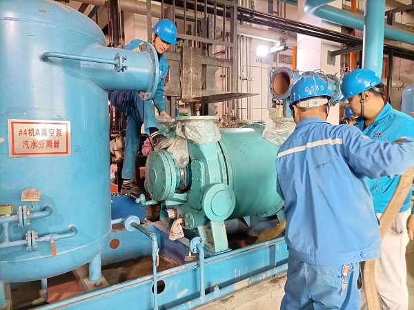 錦陽(yáng)電廠#2機(jī)組A級(jí)檢修正在緊張進(jìn)行中,巡檢發(fā)現(xiàn)#4機(jī)A真空泵運(yùn)行異常,檢修部高度重視、緊急抽調(diào)汽機(jī)檢修班部分人員投入到設(shè)備的搶修中。真空泵是電廠重要輔機(jī)之一,其作用是抽出凝汽器中的未凝結(jié)氣體,使汽輪機(jī)正常運(yùn)行中維持足夠真空度,形成負(fù)壓保證汽輪機(jī)正常進(jìn)汽做功。真空泵故障將會(huì)影響系統(tǒng)真空度、機(jī)組出力,嚴(yán)重時(shí)會(huì)造成機(jī)組停機(jī)。 本次設(shè)備搶修作業(yè)涉及到高空、吊裝等特種作業(yè),時(shí)間緊、任務(wù)重,汽機(jī)班全力以赴,分秒必爭(zhēng)。真空泵解體后,發(fā)現(xiàn)驅(qū)動(dòng)端軸承磨損嚴(yán)重,軸承與軸抱死,初步判定上述現(xiàn)象是造成本次設(shè)備故障的直接原因。檢修人員各司其職、按照分工:一組取下磨損軸承,測(cè)量大軸原始數(shù)據(jù),打磨修復(fù)磨損區(qū)域,分析造成本次設(shè)備故障原因;二組打磨、清洗拆卸下來其余設(shè)備零部件,確認(rèn)需回裝備件;三組準(zhǔn)備倒鏈、撬杠、拉馬等專用工具開始回裝,各環(huán)節(jié)嚴(yán)格按照檢修工藝有序開展。經(jīng)過十多個(gè)小時(shí)的持續(xù)搶修,在保證上下張口及左右偏差5s以內(nèi)后,設(shè)備進(jìn)行試轉(zhuǎn),振動(dòng)、聲音、溫度、電流等各項(xiàng)參數(shù)均優(yōu)良,搶修工作取得圓滿成功。 此次搶修,及時(shí)消除了真空泵存在的安全隱患,提高了設(shè)備安全運(yùn)行周期,為機(jī)組安全穩(wěn)定運(yùn)行打下了堅(jiān)實(shí)的基礎(chǔ)。 |