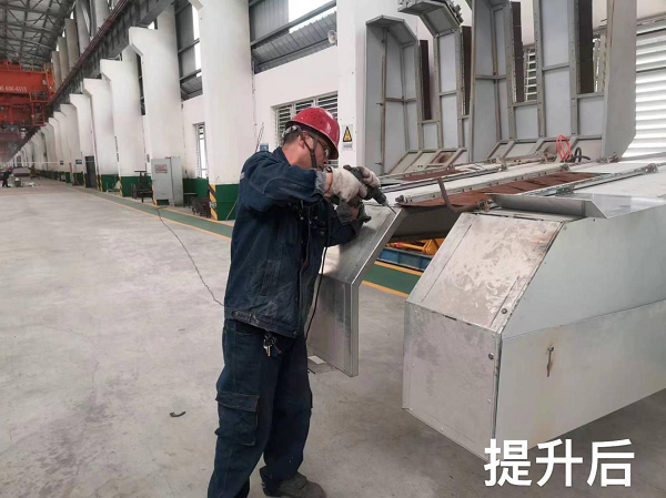 更換陽極作業(yè)是電解鋁生產(chǎn)工藝的重要環(huán)節(jié),多功能天車提吊殘極至規(guī)定作業(yè)區(qū)域,隨后由煙塵收集裝置將陽極進(jìn)行封閉、靜置、收集煙塵、降溫。由于集氣罩蓋板頂部氣缸作業(yè)過程中冷熱變化易結(jié)銹,在作業(yè)過程中故障率頗高。針對(duì)此項(xiàng)問題,車間創(chuàng)新小組積極行動(dòng),通過查看圖紙、分析原因、制定方案、多次實(shí)踐,將氣缸更換為手動(dòng)閥與合頁,變氣動(dòng)控制為手動(dòng)控制,同時(shí)對(duì)上蓋及前蓋進(jìn)行改裝提高密閉性,最終改造成功。經(jīng)過改造,既降低設(shè)備了使用過程中的故障率,又減少了設(shè)備用風(fēng)量和用電量,同時(shí)收塵集氣的效果得到明顯增強(qiáng)。“這次對(duì)集氣罩的提升改進(jìn),使操作更為精準(zhǔn)快捷,作業(yè)時(shí)省時(shí)、省力,工作效率大幅度提升”車間職工楊世超在使用設(shè)備后感慨道。
