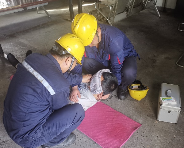 陽極分公司成型車間熱媒瀝青班組開展高溫中暑應(yīng)急演練