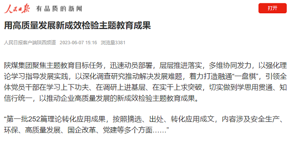 人民日報客戶端 |陜煤集團:用高質(zhì)量發(fā)展新成效檢驗主題教育成果