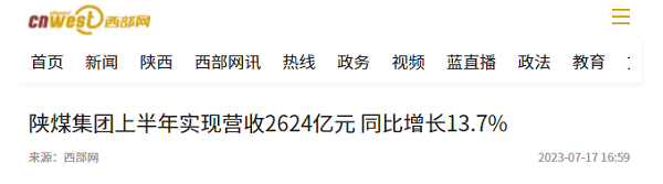 西部網(wǎng) | 陜煤集團上半年實現(xiàn)營收2624億元 同比增長13.7%