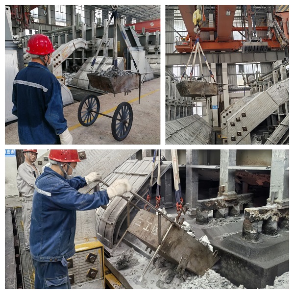 近日,一款簡便實(shí)用具有可推運(yùn)可吊裝雙重功能的電解槽槽間進(jìn)料小推車在鋁鎂合金分公司電解一車間三工區(qū)投入使用,有效提高了初封極作業(yè)效率。 據(jù)了解,電解車間槽與槽之間間距狹窄,此前使用的小推車受寬度和材質(zhì)限制,在封極上料過程中無法直接推入作業(yè)區(qū)域,只能人工用鐵锨端料進(jìn)入槽間上料。針對此問題電解一車間技術(shù)革新小組在多方征求職工意見的基礎(chǔ)上,經(jīng)過反復(fù)試驗(yàn),最終成功制作出一款以不銹鋼鋼板為制作原材料的“防磁場多功能槽間進(jìn)料小推車”并投入使用。該小推車在充分考量初封極所需料量和電解槽磁場影響的基礎(chǔ)上,合理設(shè)置尺寸,保留基礎(chǔ)功能并在箱體側(cè)部加焊了4個吊環(huán)方便天車吊運(yùn)。作業(yè)時(shí),只需將小推車裝滿封極料后推至需要初封陽極電解槽出鋁端口,然后用專用的防磁吊鉤將小推車吊運(yùn)至初封極工作面,摘掉其中兩個掛鉤后將小推車中料塊精準(zhǔn)翻置到陽極表面并用鐵锨簡單平整就可完成初封極工作。 今后,電解一車間技術(shù)革新小組將在創(chuàng)新革新道路上持續(xù)發(fā)力,以創(chuàng)新思維為實(shí)現(xiàn)安全工作、高效作業(yè)目標(biāo)提供堅(jiān)強(qiáng)保障。 |