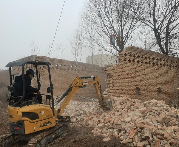 作業(yè)人員分為兩組,一組人員負責磚塊清理工作,駕駛挖掘機將舊房屋墻面推倒,使用砌墻刀對每一塊磚上的水泥灰進行剔除干凈,清理后的磚塊擺放到三輪車上運送至#3#4機間冷塔南邊空地。另一組負責場地鋪設工作,將磚塊依次整齊的鋪設在地面上,搭建出一處長22米、寬8米的嶄新物資儲存點,經過一下午的努力,工作順利完成。