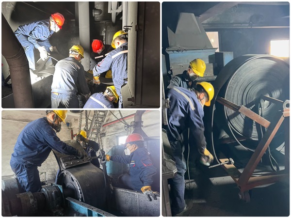 陽極分公司成型車間返回料#1斗式提升機從階段性試運行到持續(xù)生產(chǎn)已有9年之久,連接部位積料和銹蝕問題逐漸顯現(xiàn),主動輥滾筒及皮帶磨損程度也已達到更換標準。近期,結合工作實際和設備檢修計劃,車間決定對#1斗式提升機進行全面維修。 此次返回料斗式提升機維修強度高、難度大,分公司相關職能部門及車間高度重視,成立檢維修工作小組,商討制定維修方案和應急預案,隨著備品備件的逐步到廠,維修工作如期展開。維修過程中,檢修班組和生產(chǎn)班組協(xié)同配合,從拆卸固定螺栓、清理積累物料到對拆下部件進行標記分類擺放、備品備件有序更換安裝,維修人員精心操作、規(guī)范作業(yè),確保每道工序有條不紊、高效完成。特別是在手動盤車更換80米皮帶過程中,檢修人員結合現(xiàn)場實際自主設計制作適用工具,有效推進了更換進度。經(jīng)過為期5天的不懈努力,于4月12日按計劃完成維修更換工作,設備運行調(diào)試正常后將投入生產(chǎn)。 此次檢修工作,不僅徹底消缺了該設備存在的問題,也有效保證了后期車間生產(chǎn)工作的持續(xù)穩(wěn)定。今后工作中,成型車間將持續(xù)做好設備隱患排查治理,確保設備安全高效穩(wěn)定運行。 |