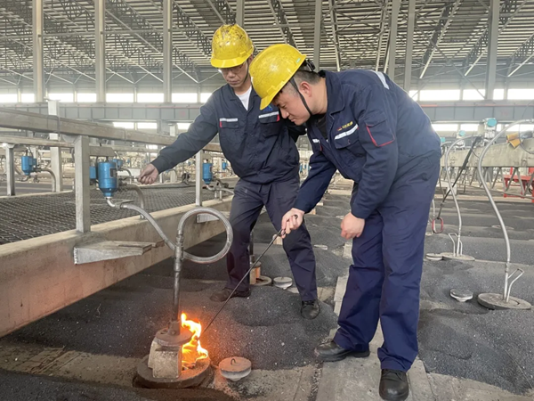 為進(jìn)一步滿足陽極代加工生產(chǎn)任務(wù)需求,有效釋放富裕產(chǎn)能,5月6日,陽極分公司焙燒車間點(diǎn)火啟動(dòng)2#焙燒爐2#燃燒系統(tǒng),分公司領(lǐng)導(dǎo)及部室相關(guān)人員到場(chǎng)指導(dǎo)。此次點(diǎn)火啟動(dòng)后,預(yù)計(jì)預(yù)焙陽極產(chǎn)量較之前可增長25%。 啟動(dòng)前夕,為保證點(diǎn)火啟動(dòng)順利完成,分公司相關(guān)部門、車間結(jié)合前期啟動(dòng)經(jīng)驗(yàn),重新完善審定啟動(dòng)方案及應(yīng)急預(yù)案,安排專人反復(fù)檢查爐室及設(shè)備狀況,組織調(diào)溫工進(jìn)行點(diǎn)火啟動(dòng)方案學(xué)習(xí)及應(yīng)急演練。烘爐作業(yè)嚴(yán)格按照32h移爐周期,在2#焙燒爐43#爐室,實(shí)行3室點(diǎn)火運(yùn)行按移爐周期逐步恢復(fù)至7室運(yùn)轉(zhuǎn)。啟動(dòng)過程中,作業(yè)人員協(xié)同配合,由1火道至9火道交替點(diǎn)燃,手動(dòng)調(diào)整控制火焰,在調(diào)溫工的操作下,點(diǎn)火啟動(dòng)一次性成功。 在接下來的烘爐階段,車間將持續(xù)加強(qiáng)現(xiàn)場(chǎng)巡視檢查,嚴(yán)肅24小時(shí)值守紀(jì)律,及時(shí)關(guān)注火焰情況并對(duì)出相應(yīng)調(diào)整,避免噴氣量過大發(fā)生“聚氣”現(xiàn)象,確保燃燒架溫度能按照既定升溫速率穩(wěn)步提升。 |