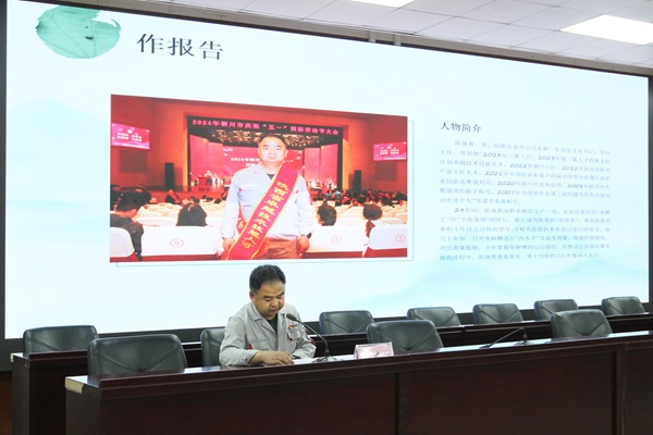 在作報(bào)告環(huán)節(jié),公司職工代表—“三秦工匠”陳繼普為大家分享了他在工作中體會(huì)的感悟。1994年被招工到銅川鋁廠,他一干就是三十年,從電解工到小組長(zhǎng)、班長(zhǎng)、工區(qū)長(zhǎng)、車間主任,從派遣外出受所在單位表彰到進(jìn)入鋁鎂合金分公司,從“2020年銅川市首席技師”到“2023年三秦工匠”,他一步一個(gè)腳印踏踏實(shí)實(shí)地努力,在平凡的崗位上默默耕耘。他勇于擔(dān)當(dāng)、敬業(yè)奉獻(xiàn)的先進(jìn)事跡也深深打動(dòng)了在場(chǎng)的每一位職工,大家紛紛表示要以他們?yōu)榘駱,不斷提升自己的道德修養(yǎng)和工作能力,不懈耕耘、孜孜以求,創(chuàng)造無怨無悔人生。