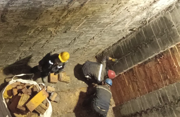 七月中旬,陽極分公司焙燒車間在對焙燒爐日常維護(hù)中發(fā)現(xiàn),2#焙燒爐45#爐室5火道爐墻變形較為嚴(yán)重,經(jīng)現(xiàn)場勘查、測量,確定該爐室火道墻已不滿足生產(chǎn)條件,為避免出現(xiàn)生產(chǎn)質(zhì)量波動和事故隱患,車間決定立即對該火道墻進(jìn)行拆除重建。 為減少火道墻拆除重建工作對生產(chǎn)任務(wù)的影響,車間在保證安全的前提下合理優(yōu)化生產(chǎn)任務(wù),并安排安全專責(zé)負(fù)責(zé)作業(yè)全過程監(jiān)督管理,綜合班班長負(fù)責(zé)有限空間作業(yè)票辦理、現(xiàn)場監(jiān)護(hù),綜合班具體負(fù)責(zé)實施,生產(chǎn)運(yùn)行班協(xié)助配合。作業(yè)前嚴(yán)格按照有限空間作業(yè)“先通風(fēng)、再檢測、后作業(yè)”的流程進(jìn)行,負(fù)責(zé)人現(xiàn)場協(xié)調(diào)指揮,作業(yè)人員克服40多度悶熱環(huán)境,服從管理、規(guī)范作業(yè),經(jīng)過為期5天的加班加點(diǎn)工作,終于按計劃如期完成焙燒爐火道墻拆除重建工作。目前,該爐室已投入生產(chǎn),經(jīng)過檢驗觀察,整體運(yùn)行狀態(tài)良好。 本次焙燒爐火道墻拆除重建工作順利完成,檢驗了火道墻拆除重建工作方案的實操性和可行性,為車間多工種配合交叉安全作業(yè)積累了寶貴經(jīng)驗,有效保證了生產(chǎn)任務(wù)平穩(wěn)有序完成。 |