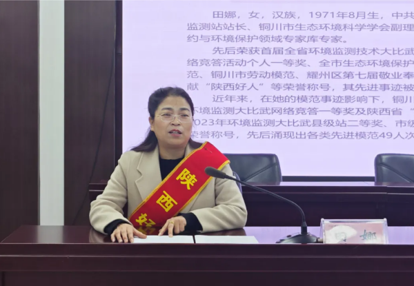 講道德環(huán)節(jié),“陜西好人”、銅川市第一生態(tài)環(huán)境監(jiān)測(cè)站站長(zhǎng)田娜受邀為大家作交流分享。她立足崗位,扎根基層近30載,懷著對(duì)黨的忠誠(chéng)和對(duì)事業(yè)的無(wú)限熱愛(ài),扎根基層,刻苦鉆研,全身心為生態(tài)環(huán)境監(jiān)測(cè)事業(yè)貢獻(xiàn)著自己的力量。在擔(dān)任耀州區(qū)廟灣鎮(zhèn)三政村任第一書(shū)記、駐村工作隊(duì)隊(duì)長(zhǎng)期間,她克服條件艱苦、道路遙遠(yuǎn)又曲折等困難,俯下身子用心用情服務(wù)村民,多處協(xié)調(diào)奔波改變村容村貌的事跡也激勵(lì)著在場(chǎng)的每一個(gè)人。大家紛紛表示,要常懷感恩之心,立足本職崗位,用實(shí)際行動(dòng)踐行愛(ài)崗敬業(yè)、勤奮工作的職業(yè)操守和擔(dān)當(dāng)精神。