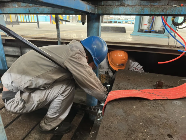 盡管磅秤結(jié)構(gòu)復(fù)雜,搶修任務(wù)困難重重,維修空間又極為有限,但搶修人員毫無(wú)懼色,他們以各種姿勢(shì)“嵌入”狹小空間,或趴或蹲,靈活拆解、調(diào)試,細(xì)致排查,尋找問(wèn)題所在。歷經(jīng)數(shù)小時(shí)緊張搶修,問(wèn)題終被攻克,磅秤恢復(fù)正常,后經(jīng)多次嚴(yán)謹(jǐn)測(cè)試,比對(duì)校驗(yàn),磅秤運(yùn)行穩(wěn)定,計(jì)量精確。