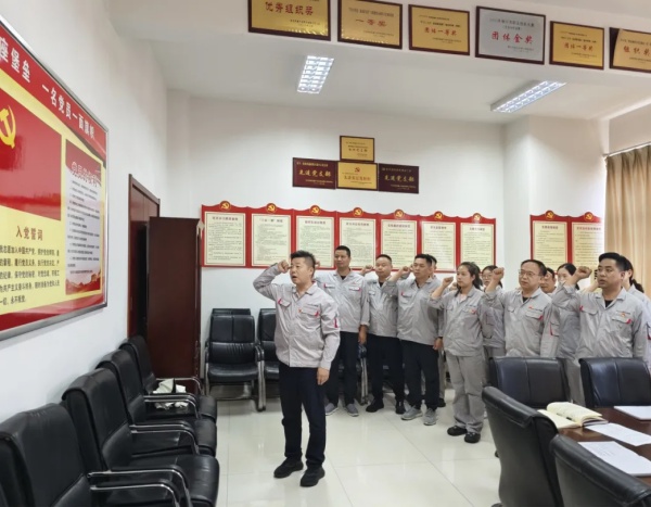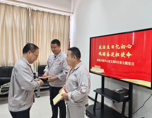 為進一步強化黨員身份意識和責任意識,激發(fā)黨員的榮譽感、責任感和使命感,8月22日下午,質檢計量中心黨支部組織開展“政治生日憶初心 砥礪奮進擔使命”主題黨日活動,通過“第一議題”學習、贈送“政治生日”禮物、重溫入黨誓詞、分享生日感言等形式,為兩名在三季度入黨的黨員過“政治生日”,讓“初心使命”在黨員心中扎根鑄魂。 活動中,支部書記王平領學了《促進民營經濟健康發(fā)展、高質量發(fā)展》一文。并為兩名黨員送上精心制作的政治生日卡及《中國共產黨章程》、黨員徽章、理論學習書籍等。隨后,在領誓員帶領下,全體黨員面向黨旗、莊嚴宣誓,重溫入黨誓詞。 在分享“初心故事、回憶入黨經歷”的環(huán)節(jié),兩名黨員結合自身成長談了自己的感悟。80后黨員楊新興表示:“通過參加組織活動,不斷汲取政治理論養(yǎng)分,在崗位中磨礪和學習,我對“黨員”二字的內涵和價值有了更切身地體會,接下來我要多向老同志學經驗,把崗位當戰(zhàn)場,用實干扛責任。”。入黨30余年的老黨員張立峰說:“現(xiàn)在雖然快到退休年紀,但我始終銘記入黨誓言和黨員的初心,我會繼續(xù)站好崗、帶好頭,為年輕人樹立榜樣,為組織貢獻自己的力量。 活動最后,王平送上生日寄語并提出要求:感謝兩位不同時期入黨同志真摯而精彩的分享,相信大家也深受觸動。希望中心黨員將今日的感動轉化為明天的行動,立足崗位、作出貢獻,讓黨的旗幟在質檢計量中心的每一個崗位上高高飄揚。 |